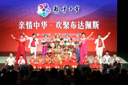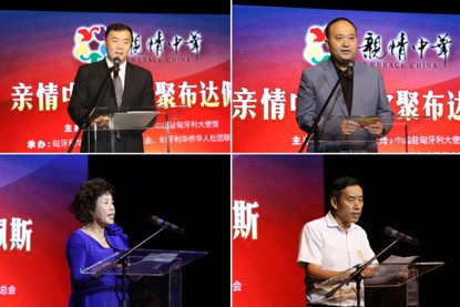 中國(guó)駐匈牙利大使館政務(wù)參贊劉波在致辭中說,今年是中華人民共和國(guó)成立70周年,也是中國(guó)與匈牙利建交70周年。廣大旅居匈牙利的僑胞為祖(籍)國(guó)的發(fā)展,為中匈兩國(guó)人民的友誼作出了積極的貢獻(xiàn)。中國(guó)僑聯(lián)文化交流部部長(zhǎng)、親情中華藝術(shù)團(tuán)團(tuán)長(zhǎng)劉奇在致辭時(shí)說,“親情中華”是順應(yīng)僑胞需求而建立的文化品牌,它傳遞的中華文化,更能給廣大僑胞帶來淡淡的鄉(xiāng)愁。承辦演出的僑團(tuán)負(fù)責(zé)人、匈牙利僑領(lǐng)林勝琴、余美明代表當(dāng)?shù)貎S胞感謝家鄉(xiāng)人民對(duì)他們的惦念,感謝“娘家人”中國(guó)僑聯(lián)對(duì)他們的關(guān)懷。