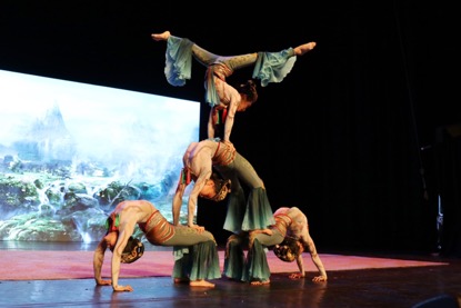中國(guó)雜技團(tuán)的王洋、袁飛、高學(xué)峰、陳雅樂等帶來的高難度雜技《騰?韻-頂碗》,曾獲得過有“雜技奧斯卡”之稱的“金小丑”獎(jiǎng),融技術(shù)、舞美、音樂于一體,展示了中國(guó)藝術(shù)家敢于挑戰(zhàn)、勇攀藝術(shù)高峰的情懷。
