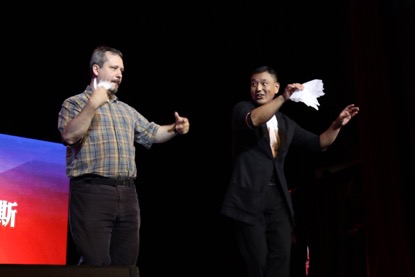 來自中國(guó)武漢雜技團(tuán)的國(guó)家一級(jí)演員吳松濤帶來的紙牌魔術(shù)變幻莫測(cè),與匈牙利當(dāng)?shù)赜^眾的互動(dòng),拉近了演員與觀眾的距離。