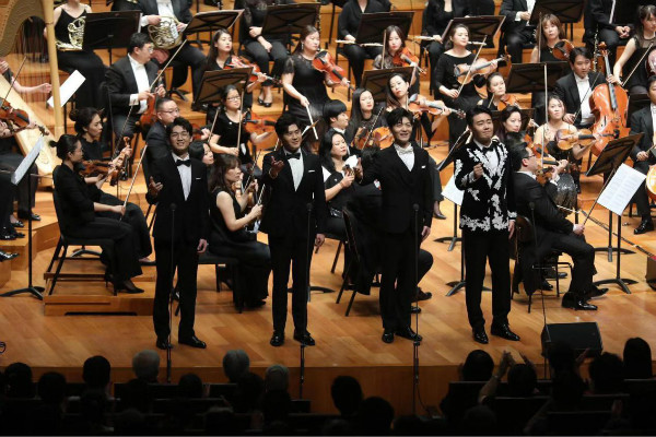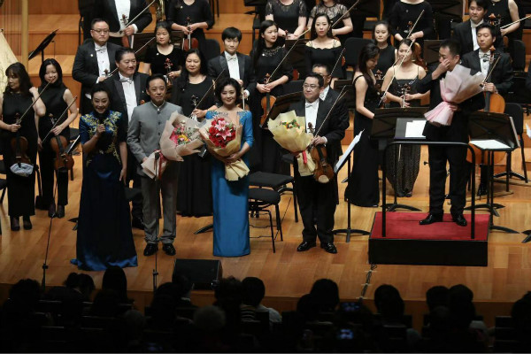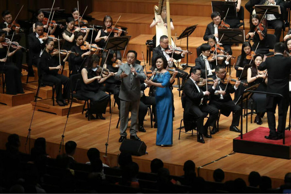 從《紅旗頌》交響序曲到《蝶戀》、《廣東音樂組曲》,從《怒吼吧,黃河》到《那就是我》,從《英雄》到《閑聊波爾卡》,藝術(shù)家們用精湛技藝演繹了多首人們耳熟能詳?shù)闹型饨?jīng)典曲目。最后,一曲深情的《我和我的祖國》令全場沸騰,臺上場下融為一體,音樂會完美謝幕。