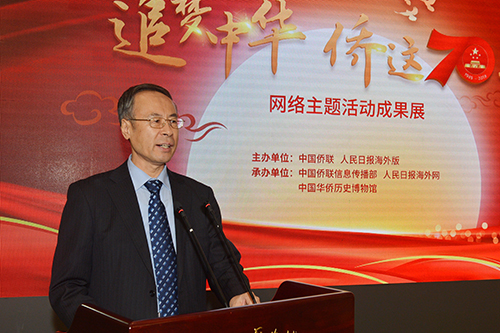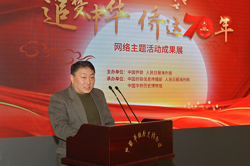 “追夢(mèng)中華·僑這70年”網(wǎng)絡(luò)主題活動(dòng)成果展開(kāi)幕式12月17日上午在中國(guó)華僑歷史博物館舉行。中國(guó)僑聯(lián)黨組書(shū)記、主席萬(wàn)立駿,人民日?qǐng)?bào)社編委、人民日?qǐng)?bào)海外版總編輯王慧敏出席開(kāi)幕式并致辭。