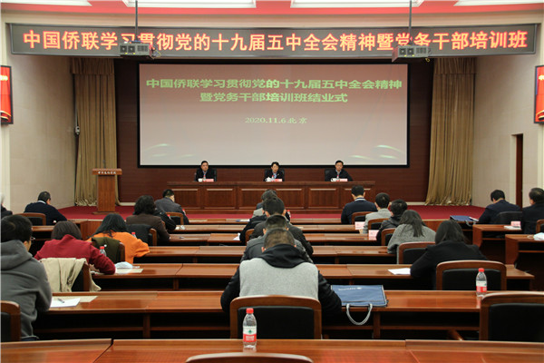 11月6日下午,中國僑聯(lián)學習貫徹黨的十九屆五中全會精神暨黨務干部培訓班在中央社會主義學院舉行結(jié)業(yè)式。中國僑聯(lián)黨組成員、副主席、直屬機關(guān)黨委書記隋軍出席結(jié)業(yè)式并作總結(jié)講話。中國僑聯(lián)組織人事部(機關(guān)黨委)部長、機關(guān)黨委常務副書記姚林楠主持會議。