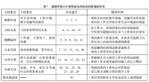由此可見,蘊含在教育場域中的“資本”具有物質與精神、個體與群體、自我與社會等多重向度,可進一步被分解為物質環境、薪酬福利、人際關系、外部支持、專業發展、自我實現六個方面,它們都是構成教育工作者職業生存狀態不可或缺的部分。本研究的目的就在于從這些方面來刻畫新時代英國華教工作者所呈現的生存實態。