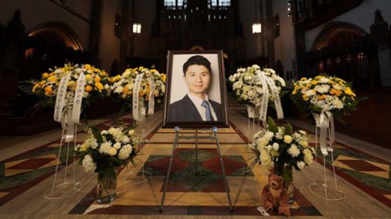 他的母親在追思會上的發言字字泣血,“媽媽生平第一次出國,竟是參加你的葬禮……”