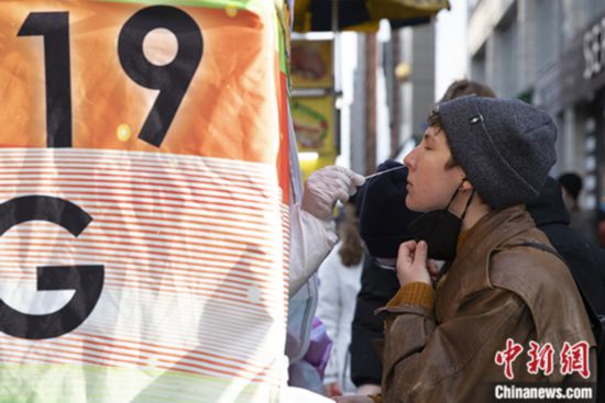 資料圖:今年12月,民眾在紐約聯合廣場排隊進行新冠檢測。 中新社記者 廖攀 攝