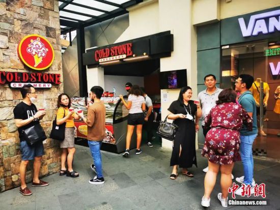 3月13日,菲律賓首都馬尼拉的冰淇淋攤檔。目前,馬尼拉疫情處于低風險狀態,市民進出商場已不需要出示疫苗接種證明。中新社記者 關向東 攝