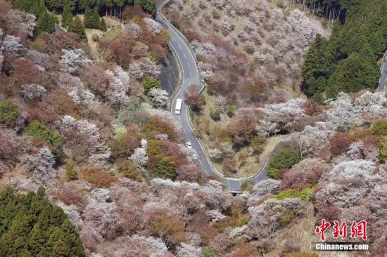 圖為日本奈良吉野山櫻花盛開,風景優美。圖片來源:視覺中國