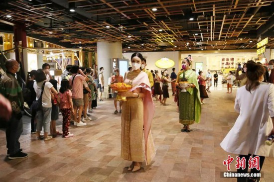 圖為泰國曼谷一知名商場內舉行敬佛表演。 中新社記者 王國安 攝