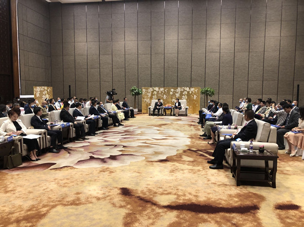 7月25日下午,海南省委常委、統戰部部長苗延紅在?跁娺B小敏及中國僑商聯合會代表團一行,并座談交流。