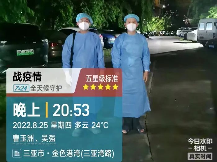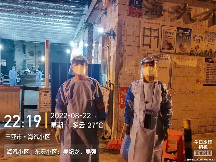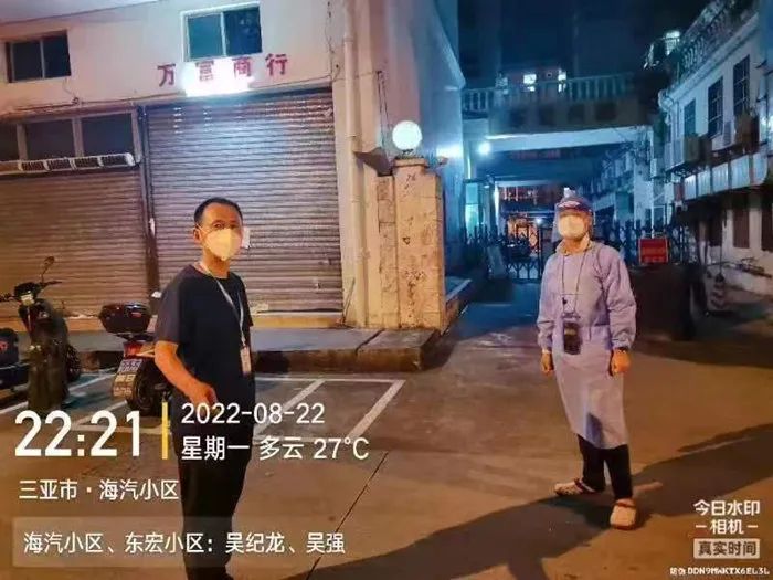 海南省僑聯(lián)志愿者曹玉洲、吳強(qiáng)夜間在金色港灣值守