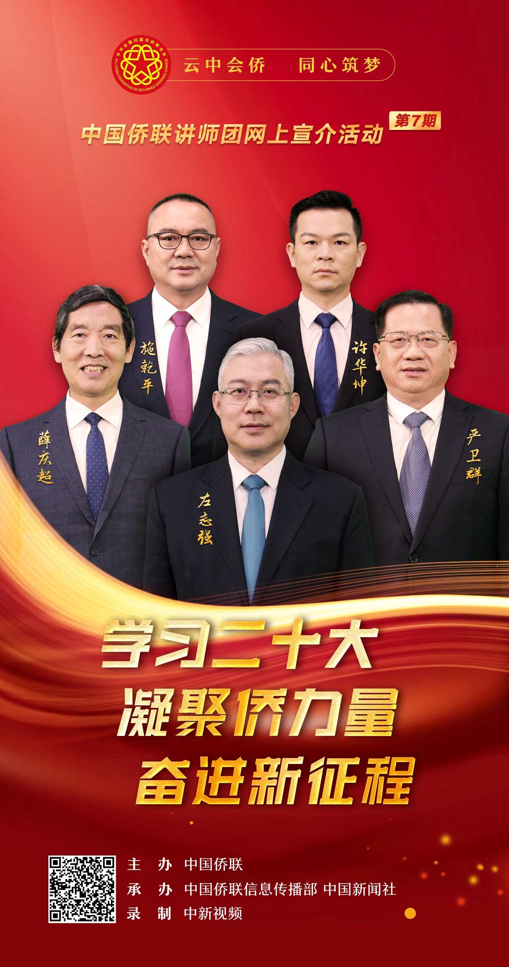 為深入學習貫徹習近平新時代中國特色社會主義思想,深入學習宣傳貫徹黨的二十大精神,深刻領會“兩個確立”的決定性意義,增強“四個意識”、堅定“四個自信”、做到“兩個維護”,進一步加深對習近平新時代中國特色社會主義思想的領悟,加強對馬克思主義中國化時代化、中國式現代化、全面從嚴治黨等重大問題的認識,深刻理解黨的二十大對全面建設社會主義現代化國家作出的戰略部署,在僑界興起學習宣傳貫徹熱潮,把思想統一到黨的二十大精神上來,把力量凝聚到黨的二十大確定的各項任務上來,中國僑聯策劃錄制并即將推出講師團網上宣介(第七期)視頻。