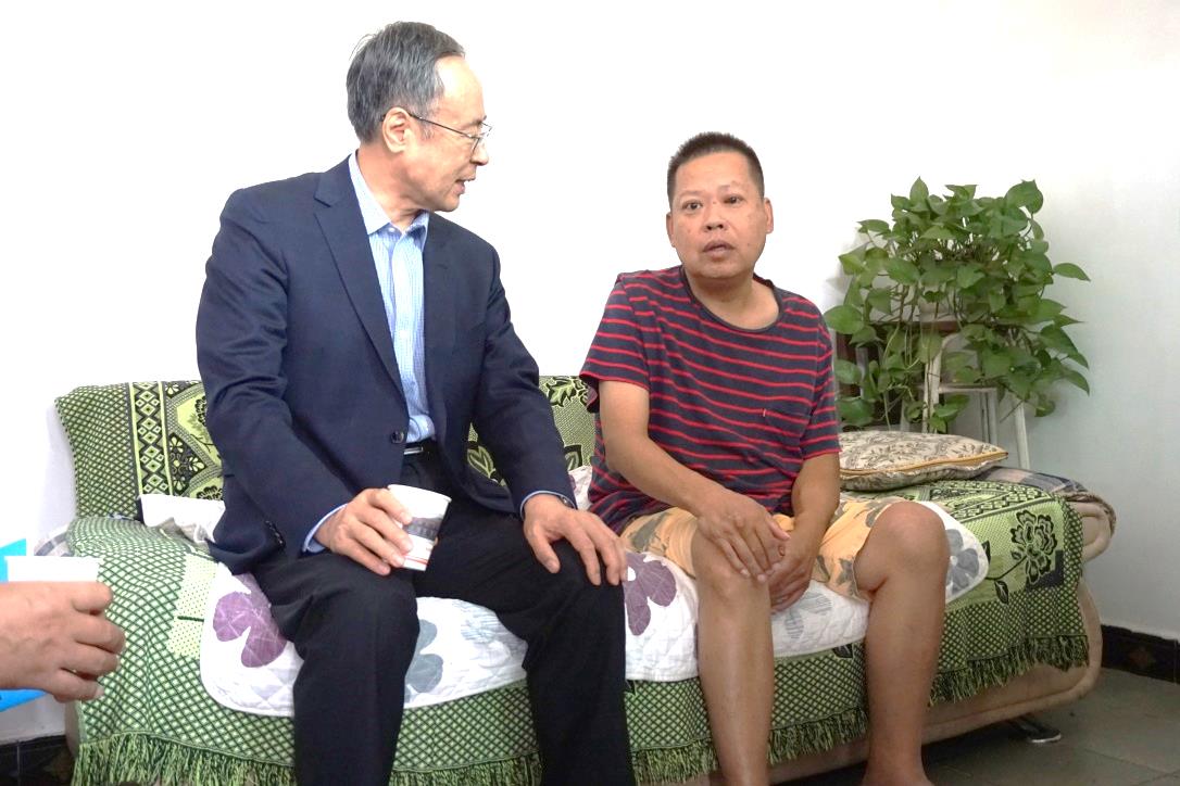 在越南歸僑黃偉權(quán)家中,萬立駿得知其1978年回國安置在華僑農(nóng)場,近年來因身患疾病納入當(dāng)?shù)氐捅5那闆r,叮囑隨行的大理州和賓川領(lǐng)導(dǎo)要繼續(xù)關(guān)心因病生活困難的歸僑僑眷,幫助他們解決實(shí)際困難。