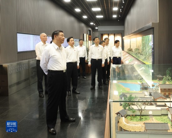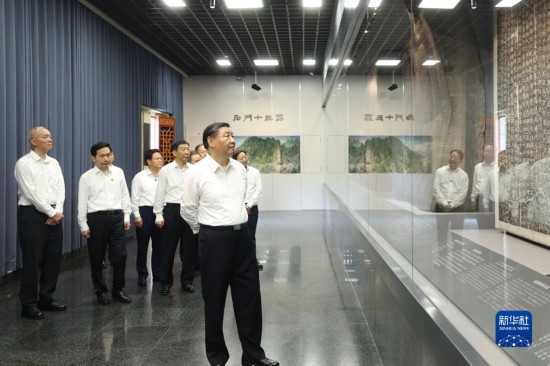 7月29日,中共中央總書記、國家主席、中央軍委主席習近平在四川考察結束返京途中,來到陜西省漢中市考察。這是習近平參觀漢中市博物館有關歷史文物展陳。新華社記者 鞠鵬 攝