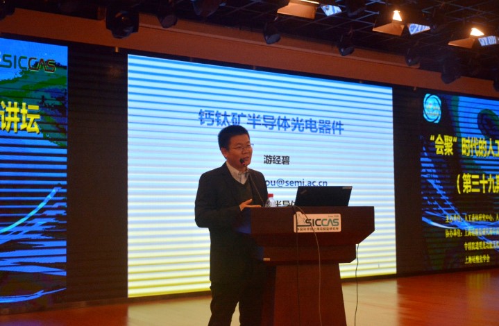 在基礎科研取得重大突破的同時,游經碧充分認識到只有面向國民經濟主戰場,推動經濟社會發展的科研成果才是“立地”的科研成果。電池的穩定性是邁向產業化的重要一步,游經碧和他的團隊在鈣鈦礦太陽能電池穩定性方面開展了一些有意義的基礎性工作,包括提出全金屬氧化物提高鈣鈦礦電池穩定性的思路,大幅度提高了鈣鈦礦電池的穩定性;提出了利用熱穩定性好、離子遷移率勢壘低的全無機鈣鈦礦解決鈣鈦礦電池穩定性的思路,研制出連續光照長時間不衰減的無機鈣鈦礦電池。游經碧與企業深入合作,從實際出發,切實地推動了鈣鈦礦太陽能電池的產業化發展。2016年,他與中國華能集團清潔能源研究公司簽訂高效平面異質結研究技術開發合同;2017年,他與全球最大薄膜太陽能電池企業中國漢能控股集團有限公司成立了中國科學院半導體研究所-漢能控股集團先進薄膜光伏聯合實驗室,目的在于開展鈣鈦礦太陽能電池產業化研究。此外,游經碧作為創始人創立了中科光電科技(煙臺)有限公司。