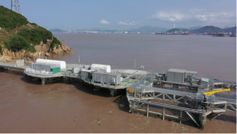 飛越浙江舟山,青山綠水間,中國首座海洋潮流能發電站就在眼前。發電機組總成平臺狀如一把巨大的“小提琴”,潮漲潮落之際,源源不斷地向國家電網輸送著來自海洋的清潔能源。