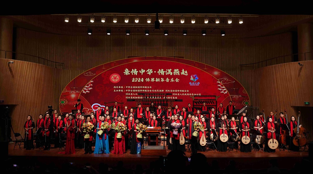 2023年12月29日晚,由中華全國歸國華僑聯合會指導,中華全國歸國華僑聯合會文化交流部、河北省歸國華僑聯合會、河北省人大常委會民族僑務外事工作委員會、河北省人民政府僑務辦公室、河北省政協港澳臺僑和外事委員會、河北演藝集團主辦,河北省歌舞劇院民族樂團承辦的“親情中華·情滿燕趙”2024僑界新年音樂會,在河北省藝術中心舉行。在激昂的音樂聲中,廣大歸僑僑眷、海外僑胞共迎新年到來。