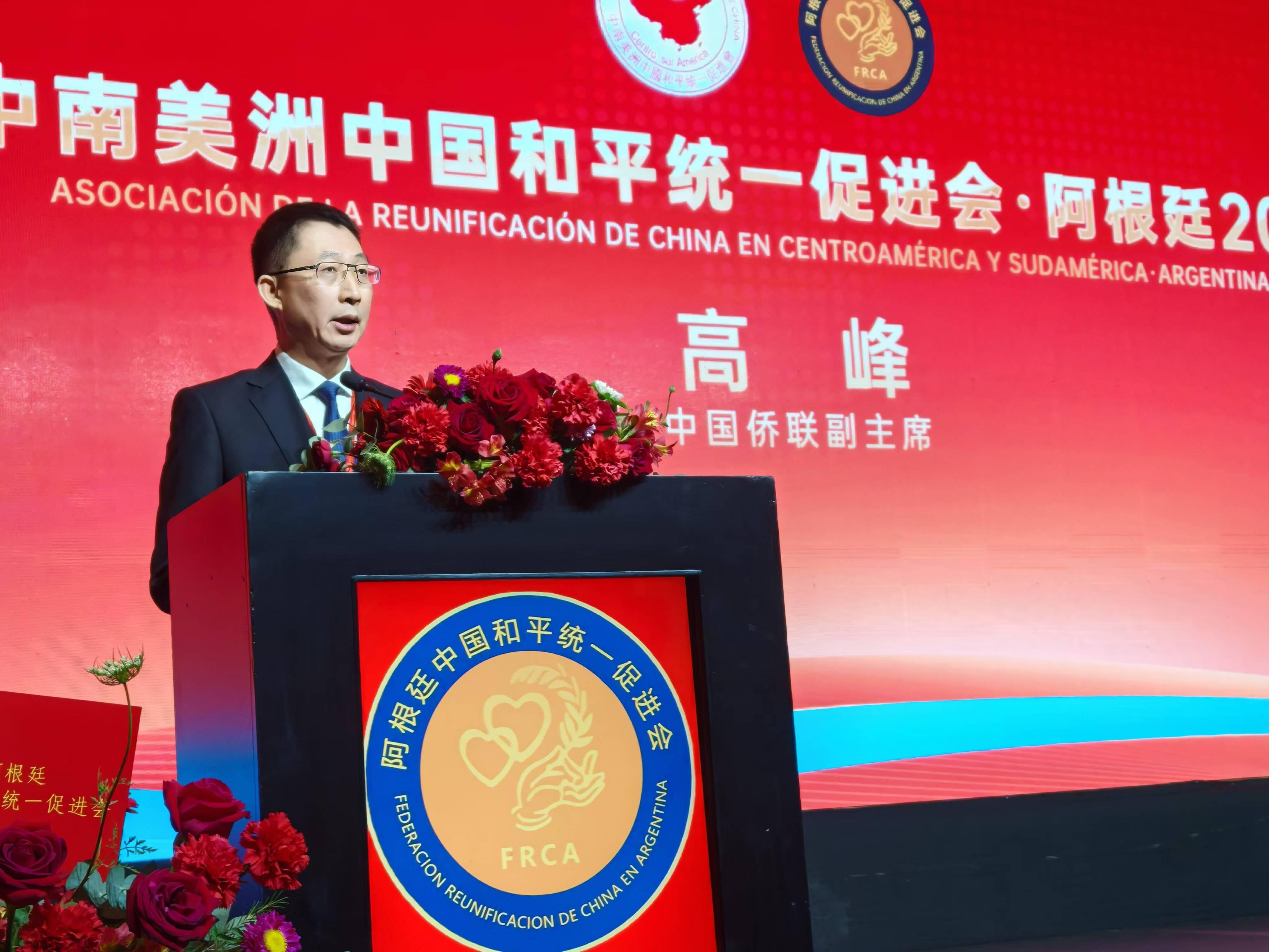 在阿根廷,高峰出席中南美洲中國和平統(tǒng)一促進(jìn)會(huì)2024年布宜諾斯艾利斯年會(huì)并致辭。他首先代表中國僑聯(lián)和萬立駿主席對(duì)大會(huì)的召開表示熱烈祝賀,向?yàn)榇龠M(jìn)中國統(tǒng)一和民族復(fù)興付出不懈努力的僑胞朋友們致以崇高的敬意和衷心的感謝。他表示,廣大旅居中南美洲的僑胞朋友們胸懷大義、團(tuán)結(jié)一致,無私無畏、堅(jiān)守正道,各展所長、各盡其力,積極開展反“獨(dú)”促統(tǒng)活動(dòng),并增進(jìn)中國和中南美洲各領(lǐng)域交流交往。他希望廣大海外僑胞更加積極主動(dòng)地推進(jìn)兩岸交流交往,不斷深化兩岸融合發(fā)展;秉持和弘揚(yáng)優(yōu)良傳統(tǒng),團(tuán)結(jié)一致,堅(jiān)決反對(duì)“臺(tái)獨(dú)”和外部勢(shì)力干涉,堅(jiān)守中華民族共同家園;攜手并肩,砥礪奮進(jìn),跑好歷史接力棒,為進(jìn)一步全面深化改革,以中國式現(xiàn)代化全面推進(jìn)中華民族偉大復(fù)興貢獻(xiàn)更多智慧和力量。