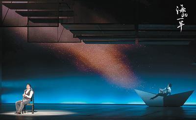 大幕拉開(kāi),海濤聲襲來(lái),海浪的光影在舞臺(tái)布景上翻涌,《海的一半》的故事由此徐徐展開(kāi)。