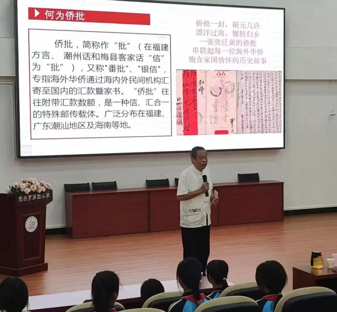 11月15日,東興市僑聯(lián)在東興市第四小學(xué)開展鑄牢中華民族共同體意識暨弘揚(yáng)“嘉庚精神”宣講活動。東興市僑聯(lián)主席蘇嫻、東興僑批匯路文化研究協(xié)會會長林惠江、東興市第四小學(xué)黨支部副書記蘇積兵、副校長蘇維亮以及四年級的部分師生參加活動。