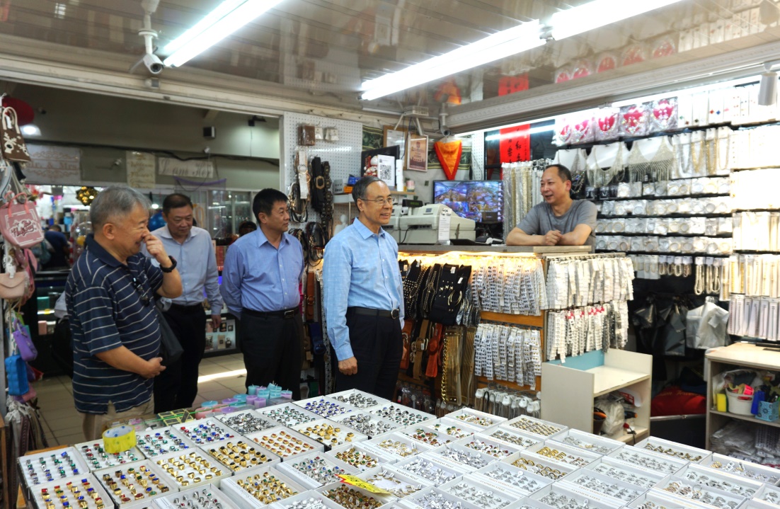 在約翰內斯堡,萬立駿一行走訪南非中國和平統一促進會、南非華人警民合作中心,考察中國商貿城,并召開僑界代表座談會,聽取主要僑團、地方商會、婦女會、華文教育基金會等不同方面的情況介紹。他指出,近年來,在習近平主席和拉馬福薩總統的引領下,中南關系保持發展勢頭,“同志加兄弟”的友好關系持續鞏固深化。中非合作論壇北京峰會期間,兩國元首宣布將兩國關系提升為新時代全方位戰略合作伙伴關系,開啟了構建高水平中南命運共同體的新篇章。旅南僑胞精神面貌好、參與熱情高、對祖(籍)國感情深,為促進兩國友好、加強各領域交流合作貢獻了自己的力量。