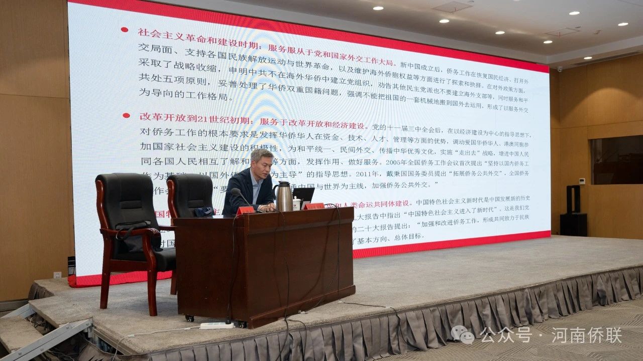 中國華僑華人研究所所長李爔恒應邀到會指導并作專題報告,河南省僑聯黨組書記、主席楊海強出席活動作講話。