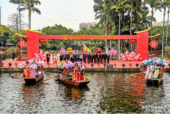 廣州花市有悠久的歷史,荔灣區更是素有“嶺南第一花鄉”的美譽。廣府人愛花、買花的民俗由來已久,據傳唐末南漢時就已出現花墟。荔灣在挖掘水上賣花歷史的基礎上,推出了“水上花市”,成為“廣州過年、花城看花”的新熱點。荔灣湖上,一艘艘結合嶺南花卉、廣府文化、蛇年主題、荔灣“水秀花香”IP的特色花船在水上徐徐行進,船上裝飾著五彩斑斕的花朵,仿佛移動的花園,生動再現千年花墟花渡頭的熱鬧場景。