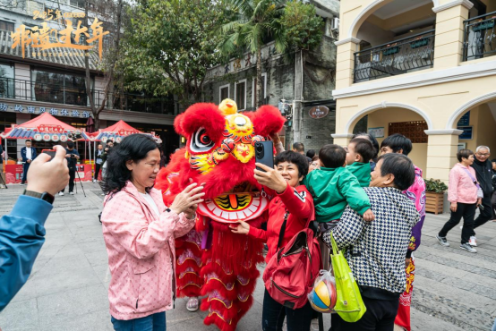 市民朋友和醒獅合影