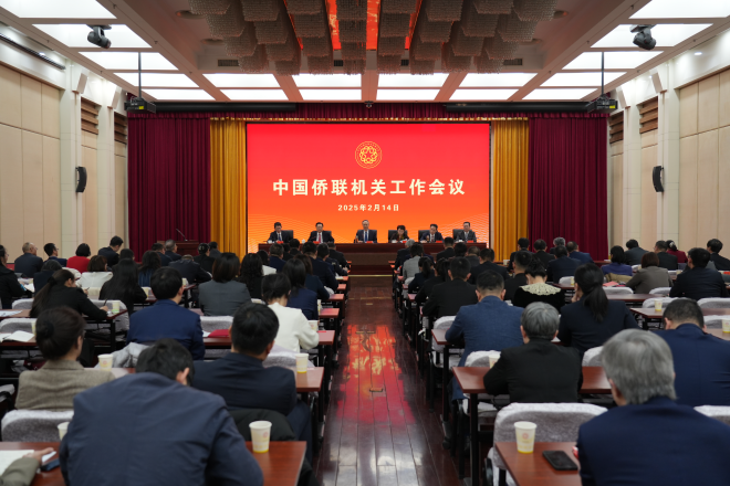 2月14日下午,中國僑聯召開2025年機關工作會議。會議以習近平新時代中國特色社會主義思想為指導,全面貫徹落實黨的二十大和二十屆二中、三中全會精神,深入學習貫徹習近平總書記關于僑務工作和群團工作的重要論述,貫徹落實中央書記處重要指示要求,落實十一代會和十一屆三次全委會議精神,總結2024年工作,表彰年度先進,部署2025年工作,以改革精神推動僑聯工作不斷取得新進步。中國僑聯黨組書記、主席萬立駿出席會議并講話,副主席程紅宣讀《關于2024年度中國僑聯有關集體和個人獲得表彰情況的通報》,黨組成員、副主席程學源主持會議,黨組成員、副主席連小敏宣讀中國僑聯2024年度考核優秀人員名單,副主席高峰、秘書長陳邁出席會議。