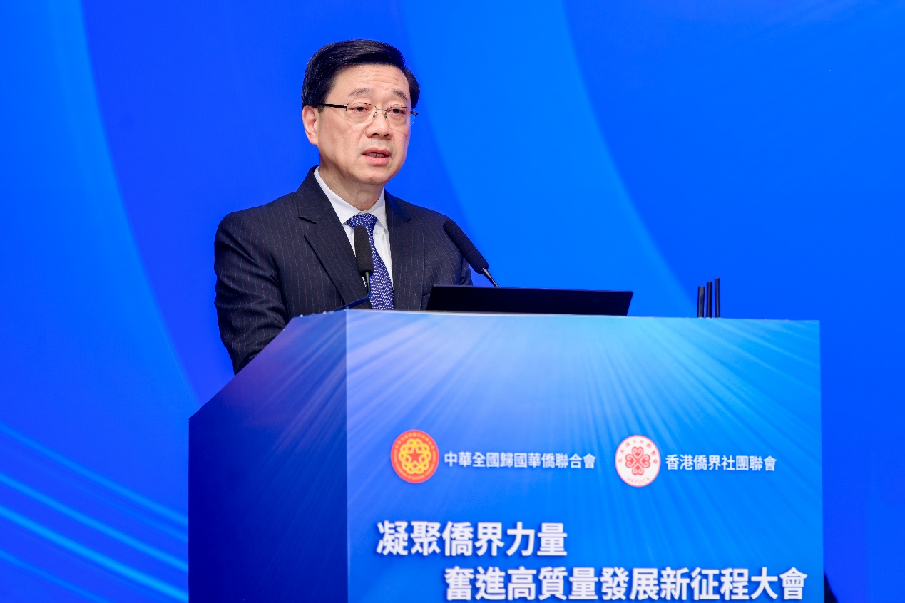 會上,李家超表示,祖國蓬勃發展機遇的肯定性,是全球經濟的“定海神針”。特區政府一直充分發揮香港“內聯外通”優勢,積極對接國家戰略,推動香港在國際交往合作登上新臺階,為國家擴大高水平對外開放貢獻力量。他勉勵香港僑界用好自身優勢,展現中華民族堅韌不屈的精神,堅守民族大義,堅定破壁突圍,堅持民心相通,繼續發揮僑智、貢獻僑力,與特區政府一同努力,加強國際交往合作,推動經濟高質量發展。