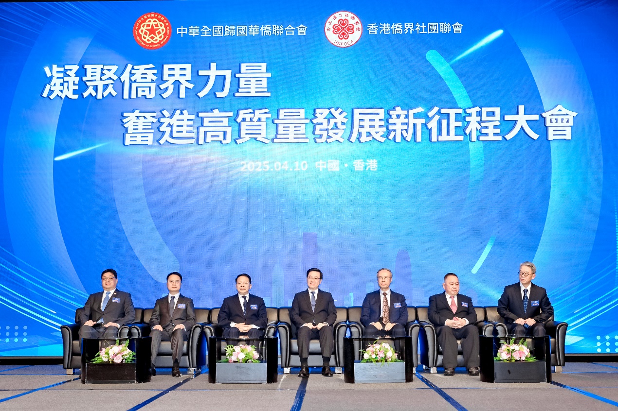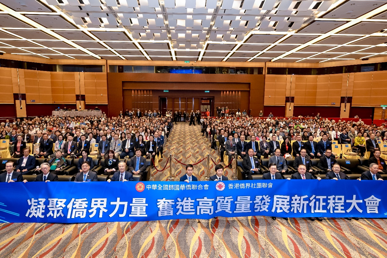 4月10日下午,由中國僑聯、香港僑界社團聯會主辦的“凝聚僑界力量 奮進高質量發展新征程”大會暨學習全國兩會精神分享會在香港會展中心舉行。香港特別行政區行政長官李家超、中國僑聯主席萬立駿出席大會并致辭,中國僑聯兼職副主席余國春、吳換炎、香港僑界社團聯會會長黃楚基及社團會員代表、嘉賓1000余人出席。