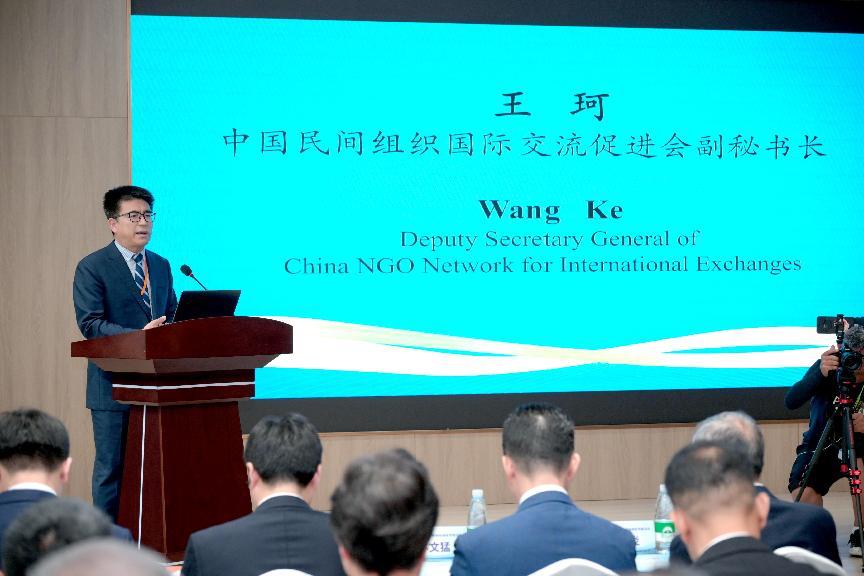 中國民間組織國際交流促進(jìn)會副秘書長王珂作主旨演講,5位海外嘉賓結(jié)合自身經(jīng)歷、圍繞活動主題交流發(fā)言。
