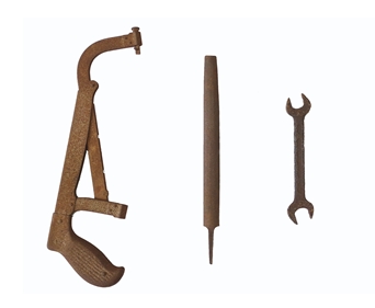 這一套修車工具包括鋸弓、半圓銼刀和固定扳手。李雯湘介紹說(shuō),父親十分珍視這些工具,解放后仍一直使用并精心保存。她深受父親“做一個(gè)對(duì)祖國(guó)對(duì)社會(huì)有用的人”教誨的影響,投身社區(qū)志愿服務(wù),并積極促成南昌市青山湖區(qū)南鋼街道建設(shè)南僑機(jī)工主題街區(qū),向當(dāng)?shù)孛癖娭v述南僑機(jī)工可歌可泣的歷史故事。