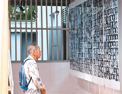 在吉隆坡南僑機工紀念館內,一名老人觀看南僑機工照片墻。