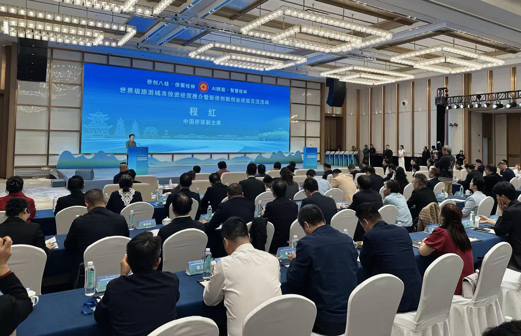10月22日,“僑創(chuàng)八桂·僑聚桂林,AI賦能·智慧桂林”世界級(jí)旅游城市投資經(jīng)貿(mào)推介暨新僑創(chuàng)新創(chuàng)業(yè)經(jīng)驗(yàn)交流活動(dòng)在廣西桂林舉行。中國(guó)僑聯(lián)副主席程紅,中國(guó)科學(xué)院院士、北京市僑聯(lián)主席、國(guó)家精神疾病醫(yī)學(xué)中心主任陸林,中國(guó)僑聯(lián)兼職副主席、廣西壯族自治區(qū)僑聯(lián)黨組書記、主席陳潔英,桂林市委書記李楚,以及來(lái)自22個(gè)國(guó)家和地區(qū)的130多位僑商僑領(lǐng)、僑界人才參加活動(dòng)。