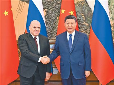習(xí)近平指出,今年以來,中俄關(guān)系錨定更高水平、更高質(zhì)量發(fā)展目標(biāo),在風(fēng)高浪急的外部環(huán)境中篤定前行。維護(hù)好、鞏固好、發(fā)展好中俄關(guān)系,是雙方的戰(zhàn)略抉擇。我同普京總統(tǒng)在莫斯科和北京兩次會晤,就中俄關(guān)系中的戰(zhàn)略性、全局性問題深入交流,作出新的謀劃和部署。雙方要保持密切協(xié)調(diào),落實好我同普京總統(tǒng)達(dá)成的重要共識,著眼兩國和兩國人民的根本利益,把中俄合作的蛋糕做好,也為世界和平與發(fā)展作出新的更大貢獻(xiàn)。