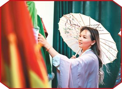 近日,一名學(xué)生在吉爾吉斯斯坦奧什國(guó)立大學(xué)孔子學(xué)院挑選晚會(huì)上用的服飾。新華社記者 李任滋攝